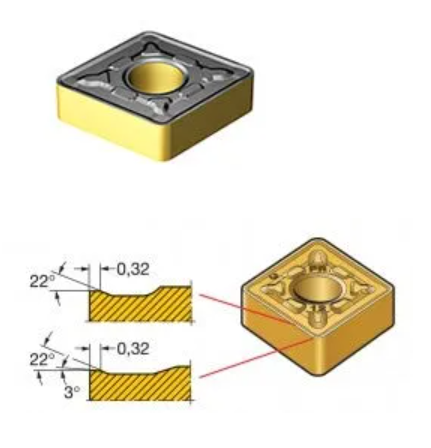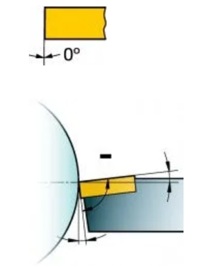 - منفی (Negative): دورو یا یکرو، استحکام لبه بالا، بدون زاویه آزاد، انتخاب اول برای تراش خارجی و شرایط سنگین