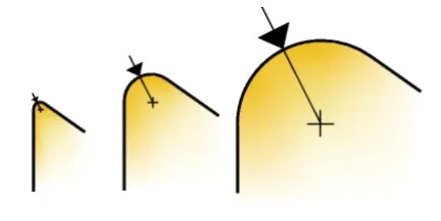 - قانون کلی: شعاع نوک باید برابر یا کوچکتر از عمق برش باشد.