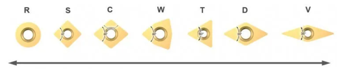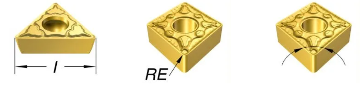 - شعاع نوک (RE) عامل بسیار مهم در تراشکاری است و بر کیفیت سطح، شکست براده و استحکام لبه تأثیر میگذارد.