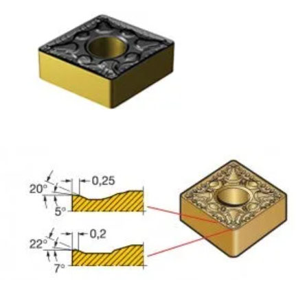 هندسه و گرید الماس باید مکمل هم باشند؛ بهعنوان مثال، سختی و مقاومت یک گرید میتواند ضعف استحکام در یک هندسه را جبران کند. ما به طور مفصل در بخش دیگری : انواع گرید الماسه های تراشکاری، را توضیح داده ایم.